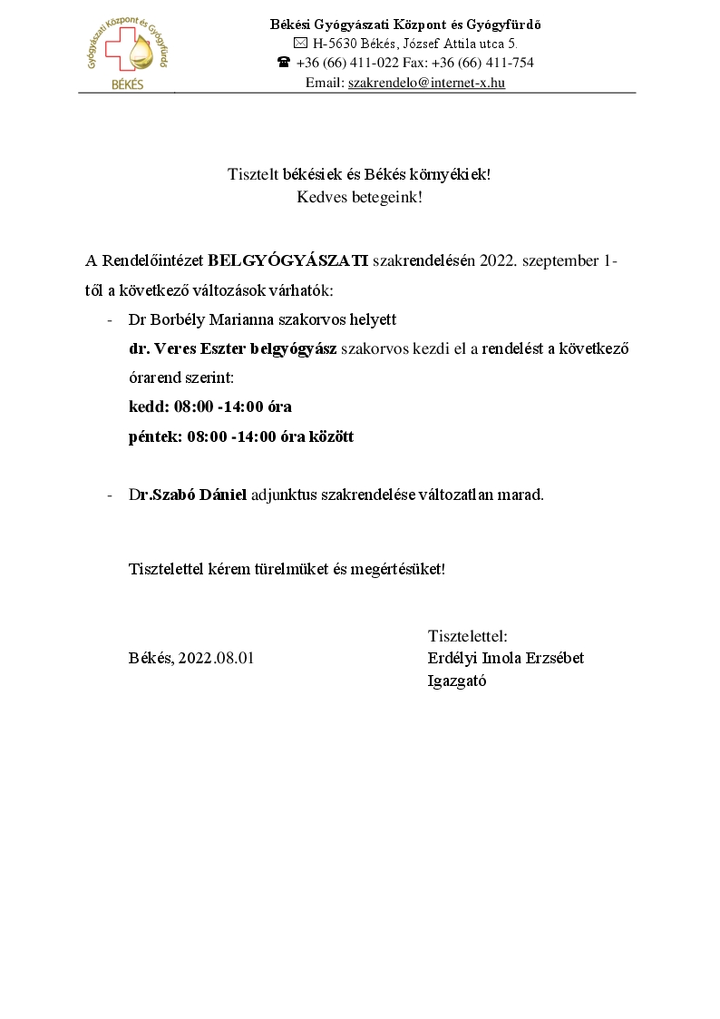 belgyógy.szakrend.Változás