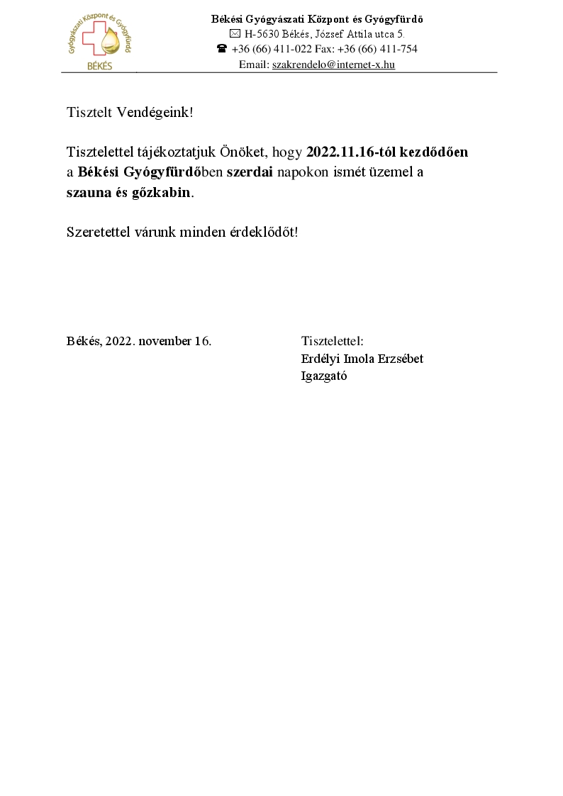 GyógyfürdőSzaunaGőzIsmét